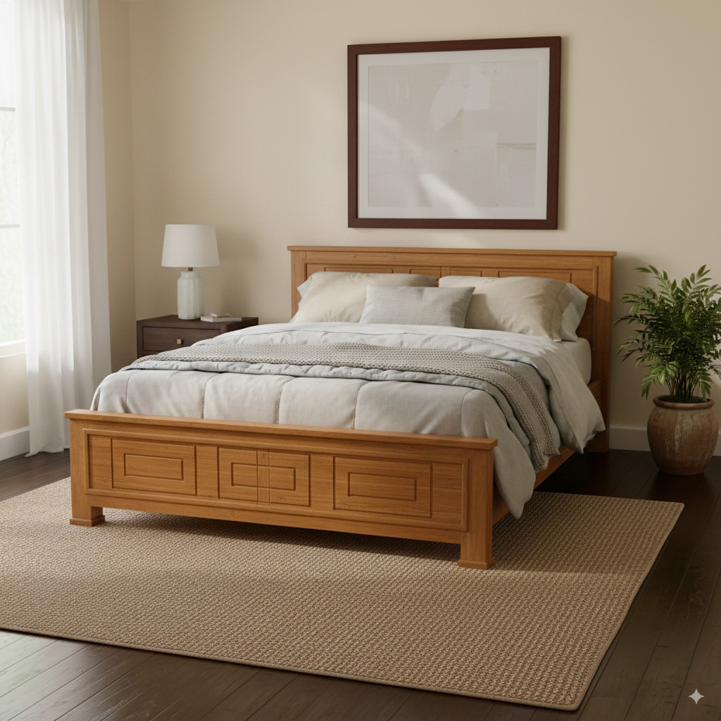 The Classic Boxy Teak Bed and its offering of uncomplicated design and superior craftsmanship. Made of 100% solid teak wood, this modern bed consists of rectangular paneling on the headboard and footboard which offers a decent and sophisticated look for any modern bedroom.