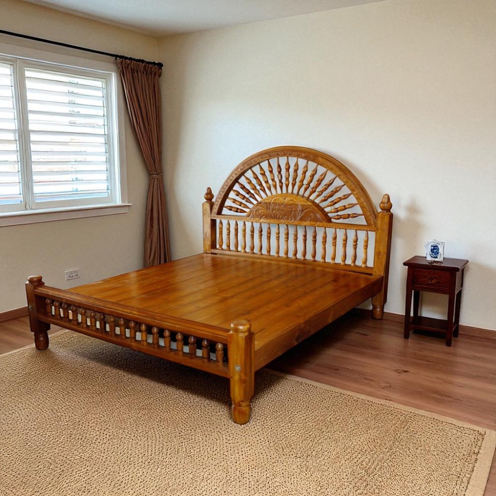 The delicate, intricately carved spokes extend from the center to form a soothing, centred pattern ideal for contemporary, ethnic, or boho living spaces. Strong frame and precision craftsmanship make this bed more than just furniture — it’s an expression of art and balance.